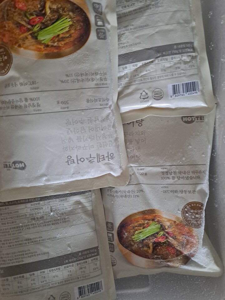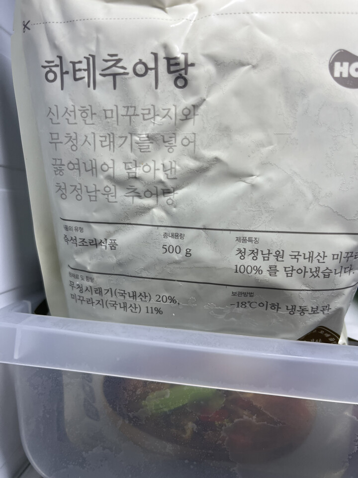 비닐팩에 스티커 붙힌 추어탕