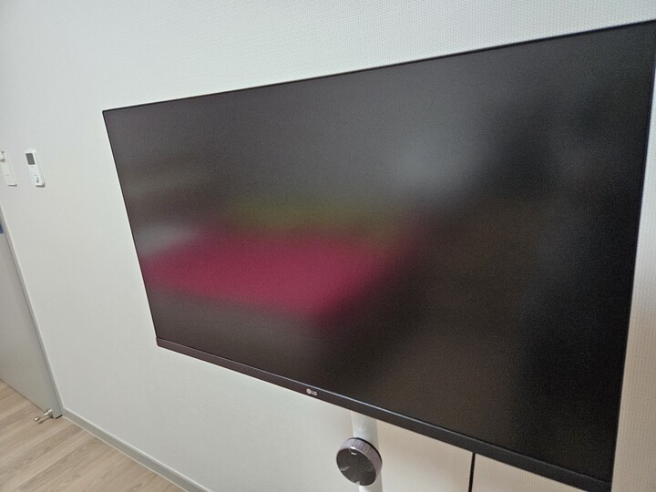 비교영상 많이봤는데 역시 실물이 더 커보이네요. 싱글침대위에 올려봤는데 꽤 큽니다. 선도 다 흰색으로 깔끔해요! 더블 모니터로 쓸거라 DP선이 짧아서 따로 구매해줬고, 모니터도 양품이었습니다. 스마트모니터가 아니다보니 블루투스로 마우스/키보드 조정하면서 주말내내 누워서 유튜브만 봤어요... 진짜 개행복하네요. 화면 크니까 어디서든 잘 보이고 사운드는 무난합니다! 소리도 아래쪽에서 나와서 잘 들려요. 기본 스탠드가 좋아서 위아래회전까지 다 잘되구요. 스마트티비는 필요없어서 이걸로 구매한건데 만족합니다.