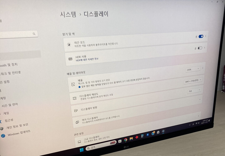 다만 4k로 쓰기에는 글자가 너무 작아 배율을 키우긴해야하네요. 불량화소는 없어보여요