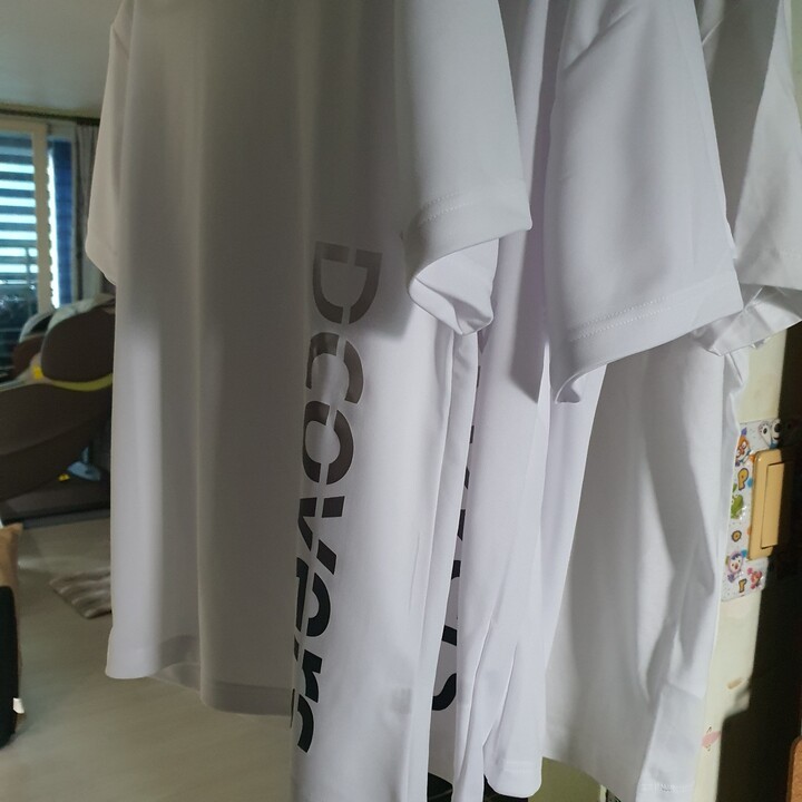 배송이 좀 늦었네요. 옷은 시원한 원단이네요. 그런데 작년에 아들한테 사준 티셔츠원단보다 얇아진게 아쉽네요.