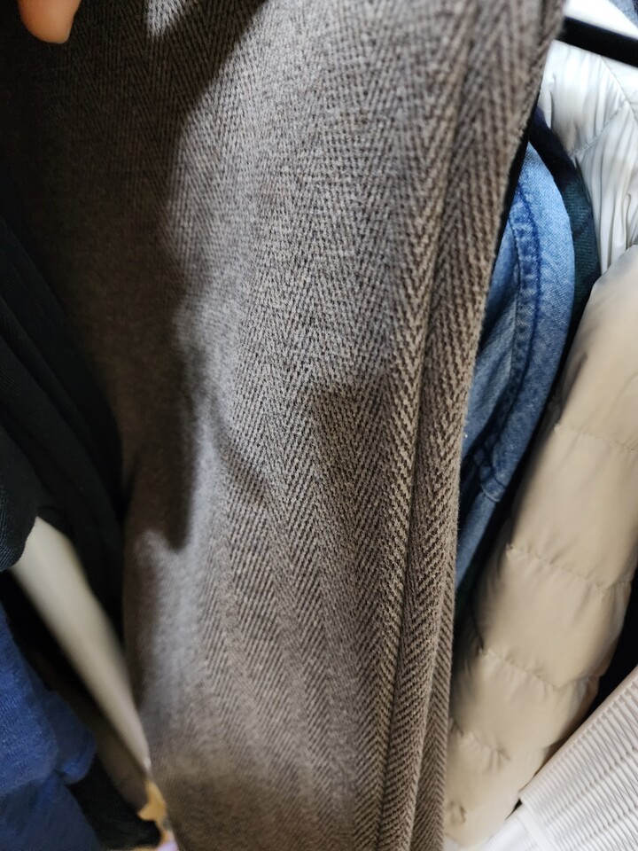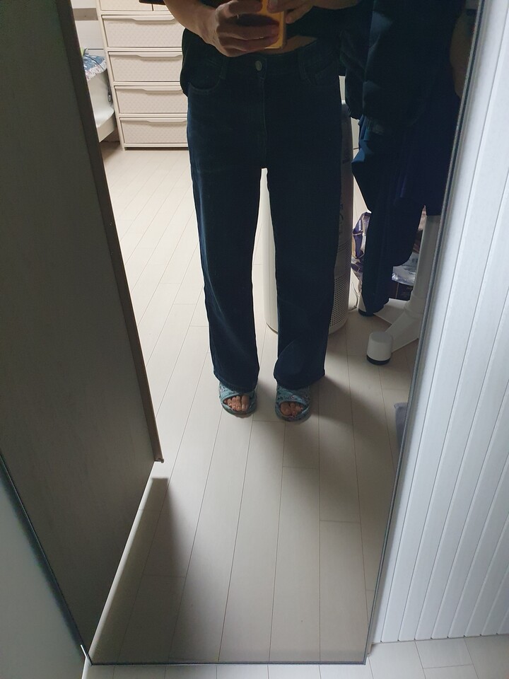 색도 예쁘고 사이즈도 잘 맞는데 생각보다 통이 엄청 넓네요. 뒤가 살짝 끌려서 조금 줄일까 고민중이네요