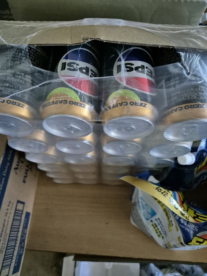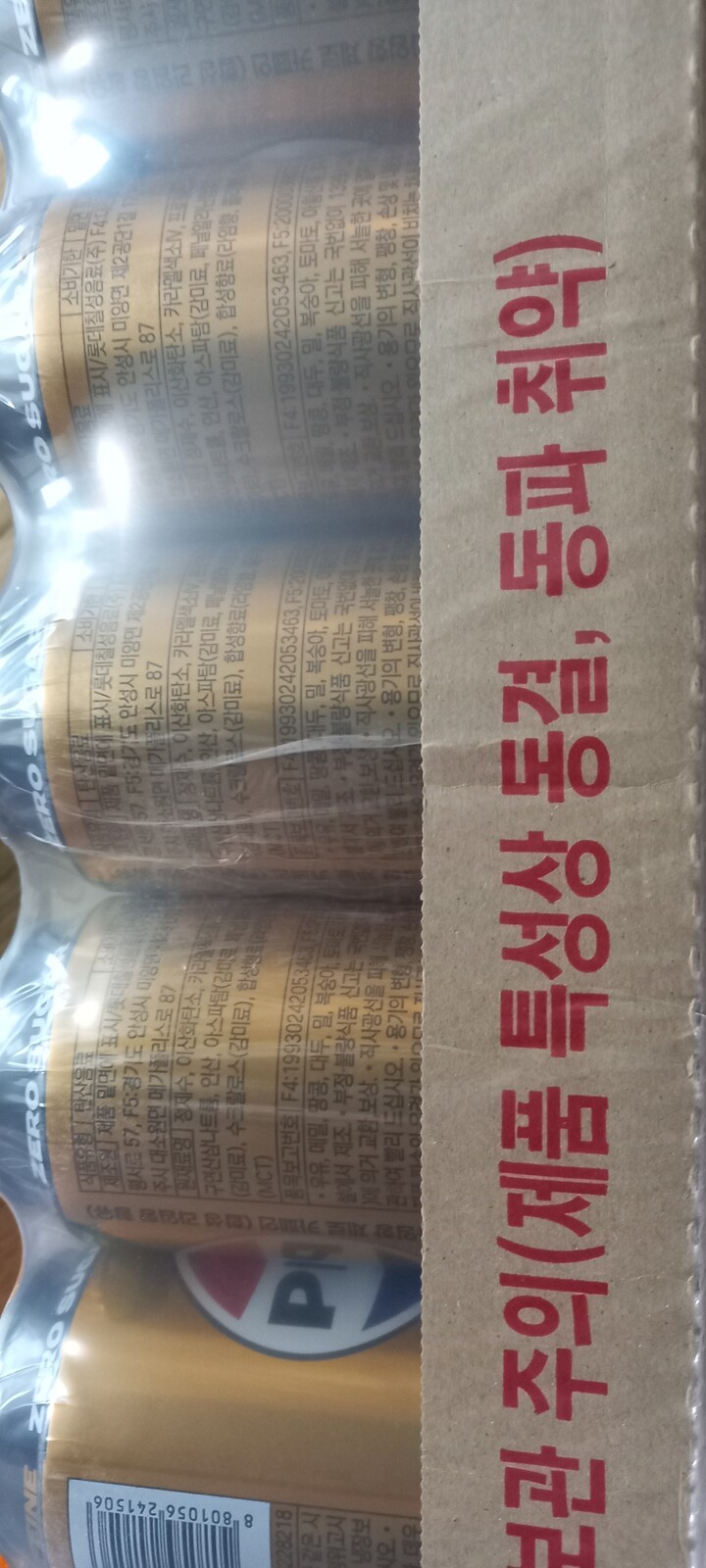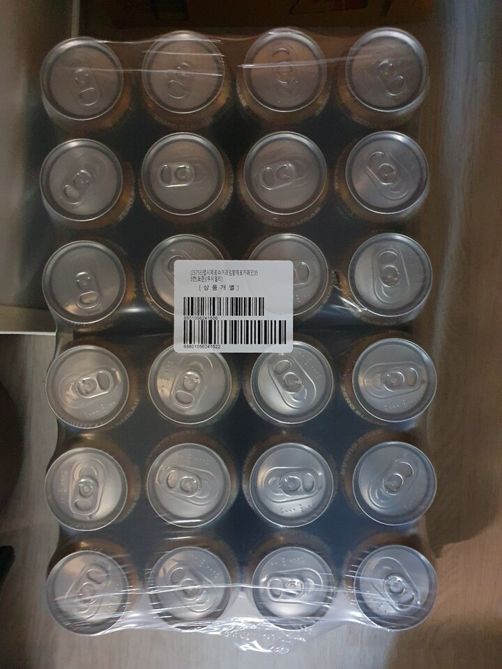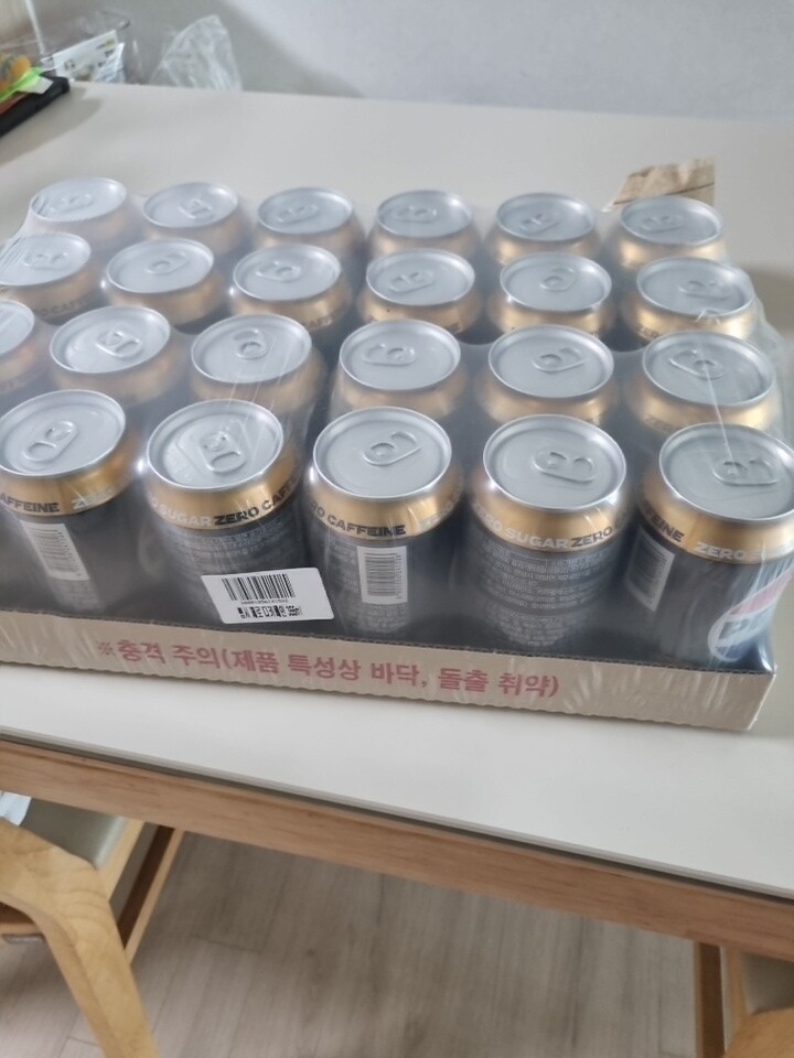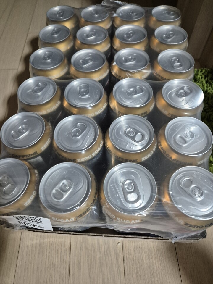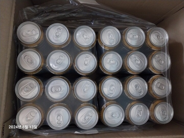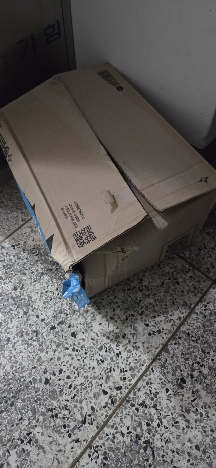다행히 제품엔 하자가 없었굽니다만, 퇴근하고 집앞에 더착한 박스를 보고 어이가 없었습니다. 한쪽이 완잔히 찢어져서 벌어져 있더군요. 제품 손성 등 귀찮은 일 생길까봐 바로 확인해보니 하자나 손상은 없었지만, 박스가 이렇게까지 훼손 돼 오는 경우는 뭔가요? 탄산음료인데 말이죠. 보니까 땜빵으로 테이프를 박스 한쪽에 붙여뒀던데 그정도면 포장을 새 박스에 하는게 맞잖아요. 기분은 좀 안 좋네요
