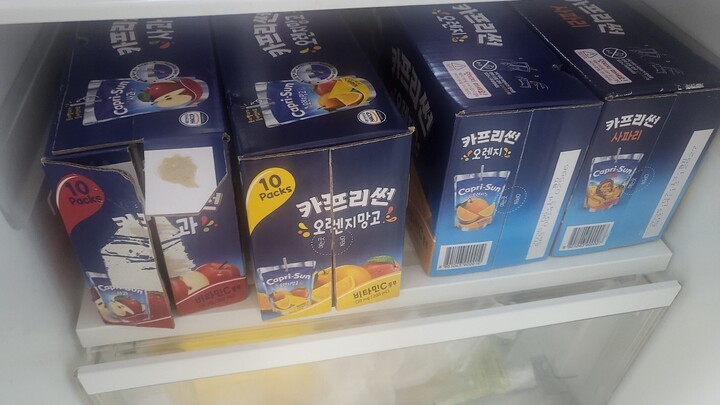 넉넉히 냉동실과 냉장실에 두었다가, 시원하게 마십니다. 냉동ㅇ실에 두었던 것은 냉장실에 옮겨서 살얼음을 만드러 슬러시로 먹어도 괜찮습니다